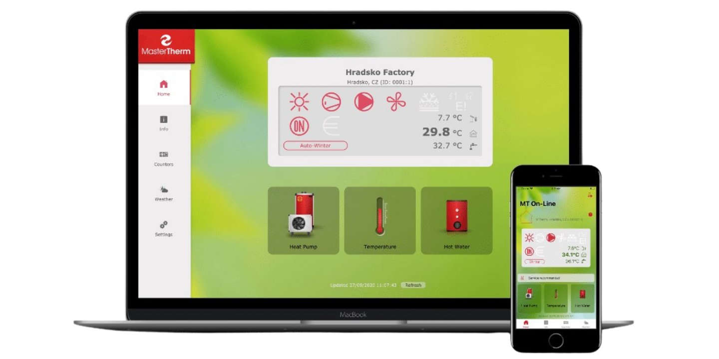 You can remotely switch on/off the heat pump, control temperature settings, including domestic hot water preparation and swimming pool heating, and configure and monitor all heating/cooling circuits and solar collectors.